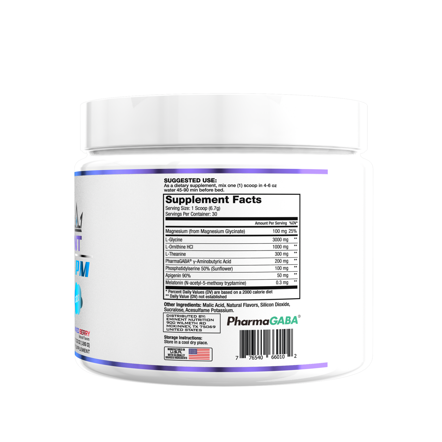 • Rapid nervous system downshift with PharmaGABA®, theanine, and magnesium glycinate to quiet overactive brain signaling and reduce sleep latency